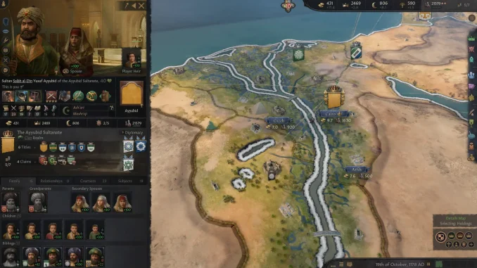 Crusader Kings III menampilkan peta abad pertengahan yang sangat luas, mencakup Eropa, Afrika Utara, hingga Asia Barat. Setiap wilayah memiliki budaya, agama, dan sistem hukum berbeda yang memengaruhi stabilitas kekuasaan. Mengelola wilayah multikultural menuntut diplomasi dan kebijakan yang tepat.